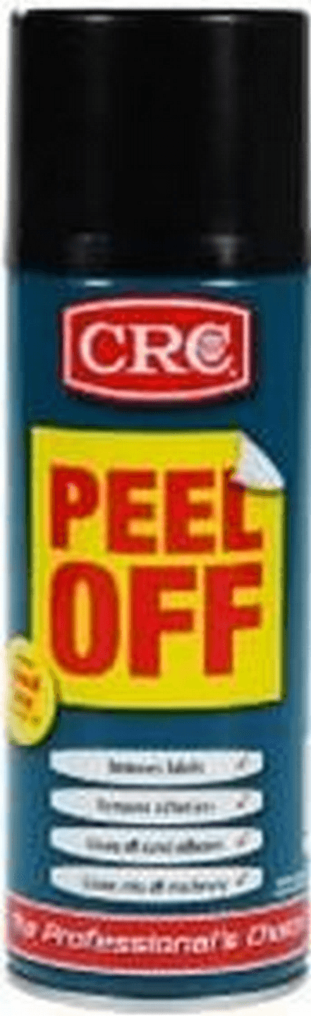 CRC Peel Off Label Remover natural citrus power of d-Limonene to soak through paper labels and release adhesive backings. Unwanted labels are then easily removed from most containers or surfaces. Any residue can be removed with a wet cloth. CRC Peel Off Label Remover can also be used to clean cured adhesive and remove industrial ink from machinery.